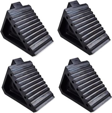 Wheel chocks are a must. And do yourself a favor do not buy the cheap plastic ones at Walmart, they will fail. Solid rubber wheel chocks are very important.